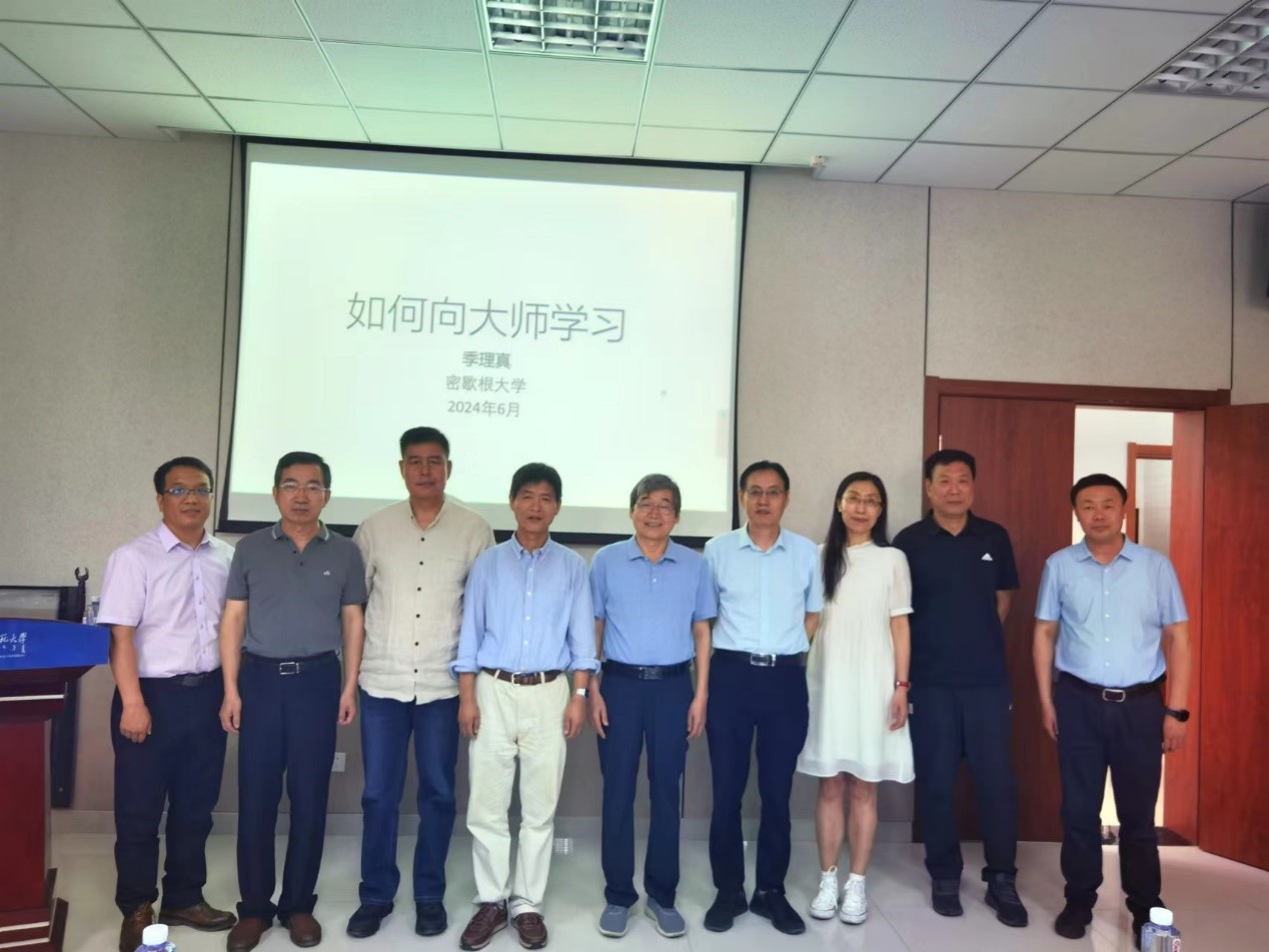 6月13日下午,无穷维哈密顿系统及其算法应用教育部重点实验室、教育部数学与应用数学专业虚拟教研室、内蒙古应用数学中心系列讲座在我校赛罕校区文史楼339学术报告厅举行。著名华人数学家、美国密西根大学教授、清华大学丘成桐数学科学中心兼职教授季理真教授应邀作了题为“如何向大师学习”的学术报告。我校原党委书记、内蒙古应用数学中心主任阿拉坦仓教授,科学技术史研究院郭世荣教授、代钦教授和原研究生院院长刘官厅教授及金年会官网师生90余人聆听了本次报告。报告由包霞副院长主持。