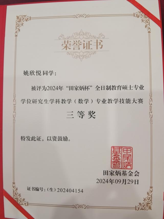 自6月8日开始,三位指导教师与参赛选手一起分析教科书内容、梳理教学设计思路、讨论研究教学创新点、模拟授课后评价修改精益求精备赛决赛。指导教师们倾囊相授,提出宝贵建议,参赛选手们不断突破、力争上游。经过9月28日一天紧张而激烈的角逐,金年会官网2023级研究生于家祺同学荣获一等奖,李佳琪和姚欣悦同学分别荣获三等奖,刘雨晴同学荣获优秀教学设计奖,三位指导老师被评为优秀指导教师。