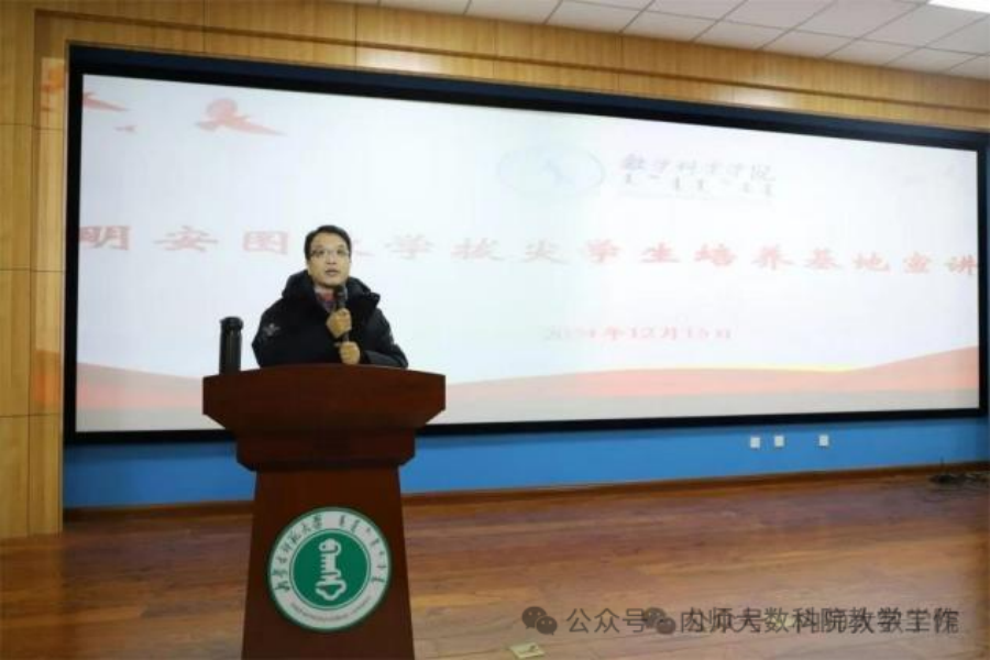 会上,萨和雅副院长围绕明安图数学基地的建设思路、目标以及具体举措为与会师生进行了介绍。他指出,明安图数学基地是按照基础学科拔尖学生培养计划2.0人才培养目标要求,结合学校办学定位和育人育才目标而成立的数学拔尖学生培养基地。其旨在通过探索导师制、小班化、个性化和国际化等“一制三化”的培养模式,实施招生培养一体规划、动态调整,着力构筑数学学科拔尖学生培养的专门通道,进而为数学学科及其相关应用领域内的创新创造提供支持。
