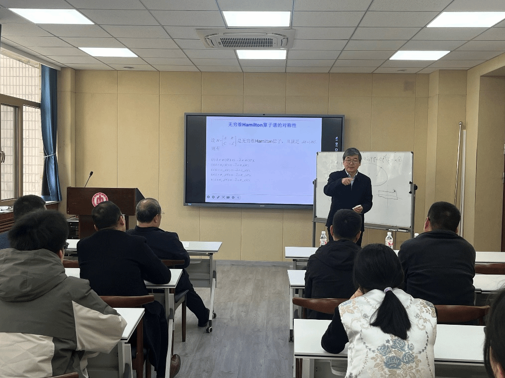阿拉坦仓教授从经典牛顿力学出发,探讨行星运动的数学描述,重点阐述牛顿力学与Hamilton力学的等效性,分析两者在描述动力学系统时的相似性与差异。并进一步从矩阵的特征值谈到无穷维哈密顿算子的谱对称与特征函数系的完备性问题,提出需要进一步研究的问题。