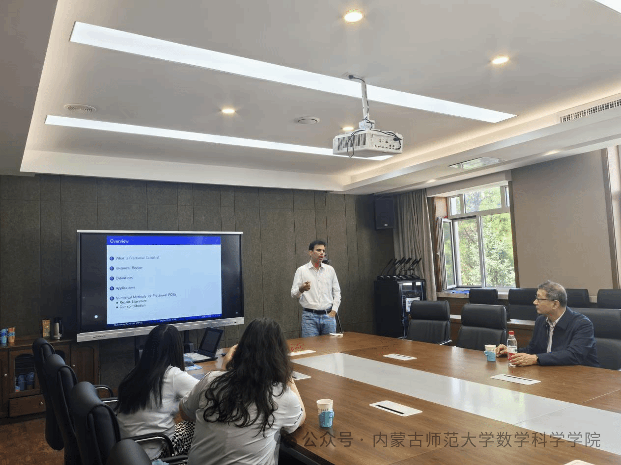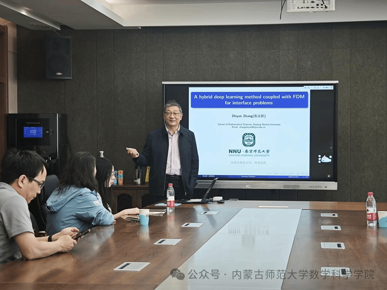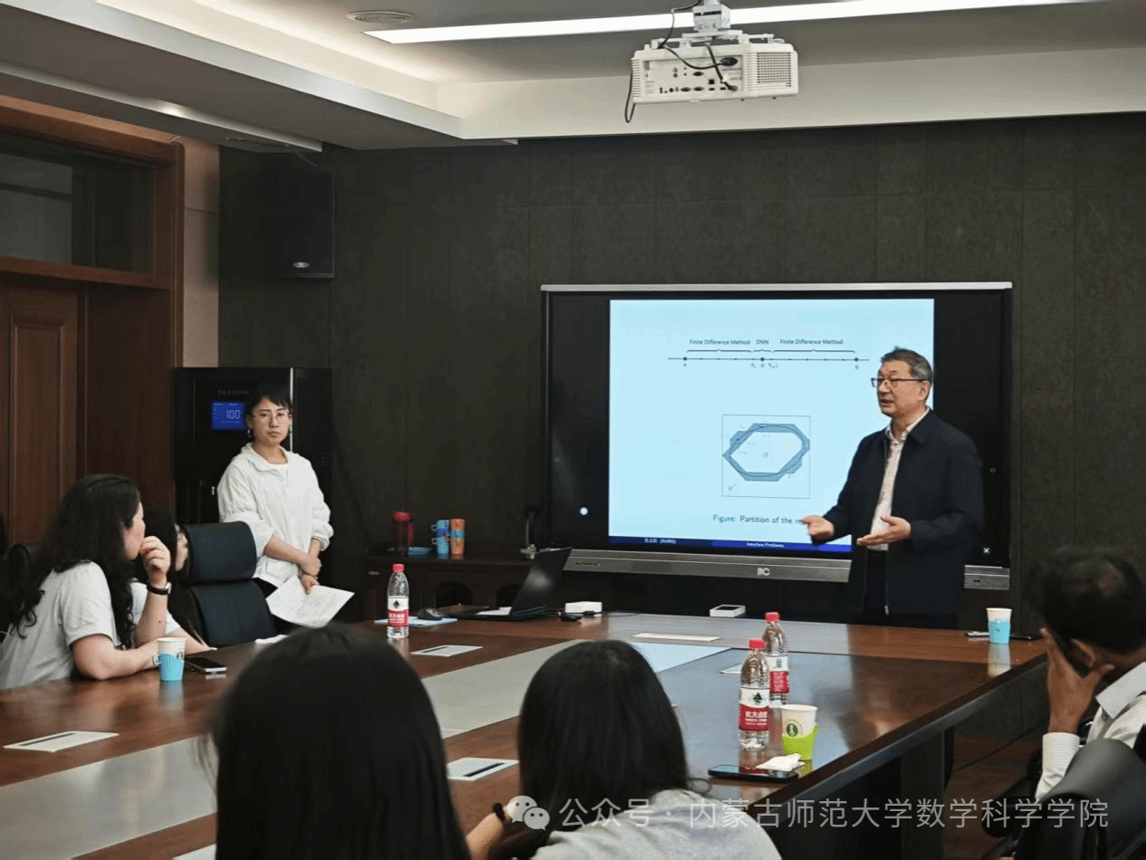 张志跃教授和河海大学ALI博士的前沿研究成果为在场师生带来了深刻的学术启发。两位专家分别从深度学习与数值计算、分数阶微分方程理论等不同角度,展示了数学研究在解决复杂实际问题中的强大应用。通过深入浅出的讲解和生动的案例分析,师生们不仅了解了当前解决界面问题和分数阶数值方法的最新进展,更对数学建模与科学计算的交叉应用有了更清晰的认识。报告结束后,与会师生踊跃提问,萨和雅副院长、王桂霞教授、高兴华老师与专家就算法优化、理论证明等专业问题展开了热烈讨论。此次交流不仅拓宽了师生们的学术视野,也为学院在计算数学、应用数学等领域的科研创新提供了新思路,进一步促进了校际间的学术合作与资源共享。