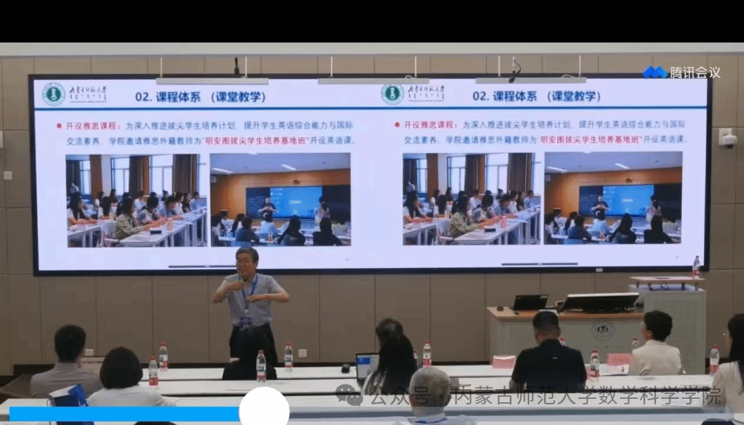 阿拉坦仓教授从教研室概况、课程体系、师资队伍、教学条件、总结与展望五个方面详细介绍了数学与应用数学专业教育部虚拟教研室自2022年6月获批以来的建设成果及成效。
