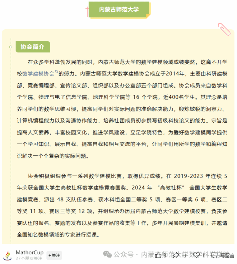 近年来,我校积极推动数学建模与实际应用的深度融合,广泛开展相关教育与教学活动,不断提升学生的数学建模能力,在各类国内竞赛中屡获佳绩。金年会诚信信誉至上金年会jinnianhuicom联合数学建模协会首次成为MathorCup数学应用挑战赛的协办单位,并针对比赛进行了专项教学与指导。通过“网络自学—协会指导—导师指正”的多层次学习模式,学生们在浓厚的学术氛围中茁壮成长,最终取得了优异的成绩。
