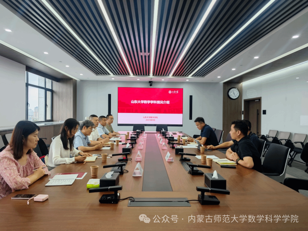为学习山东大学数学一流学科建设、山东国家应用数学中心建设及高水平人才培育的先进经验与成功做法,2025年8月8日-9日由我校教育部重点实验室主任阿拉坦仓教授带队,金年会jinnianhuicom党委书记张伟、副院长包霞、计算数学方向负责人布仁满都拉、应用数学方向负责人周艳、基础数学方向负责人耿俊赴山东大学拜会山东大学党委书记任友群和副校长刘建亚,并到山东大学数学学院和山东国家应用数学中心开展调研交流。山东大学数学学院党委书记王光辉、常务副院长胡锡俊、副院长王鹏辉、山东国家应用数学中心执行委员会副主任陈增敬、济南应用数学高等研究院综合事业部部长任婷婷和数学学院办公室主任霍睿等参加了此次调研活动。
