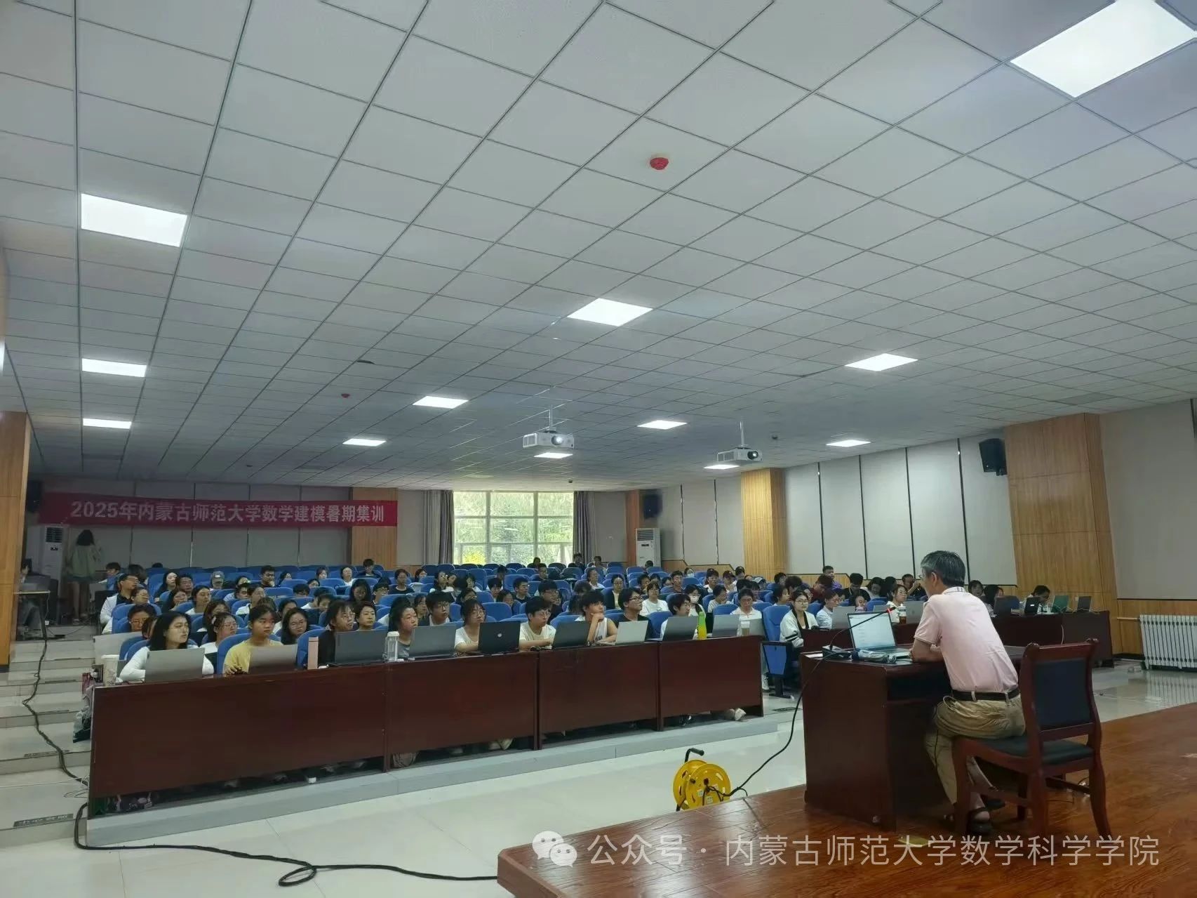 7月9日,开班仪式在学校学生事务中心举行。金年会jinnianhuicom副院长萨和雅主持仪式,并对来自兄弟院校的师生表示热烈欢迎。他鼓励全体学员珍惜机会,积极投入,在集训中收获知识、增长才干。此次集训充分利用教育部虚拟教研室的优质师资力量和内蒙古应用数学中心在区域实际问题建模与特色研发方面的资源,为学生搭建了贴近产业需求的创新实践平台。活动吸引了包括金年会诚信信誉至上金年会jinnianhuicom、物理与电子信息学院等院系学生,以及河套学院、集宁师范学院、呼伦贝尔学院、通辽职业学院等数学与应用数学专业教育部虚拟教研室共建单位和教育部师范教育协同提质计划首都师范大学组团成员高校的师生共同参与。