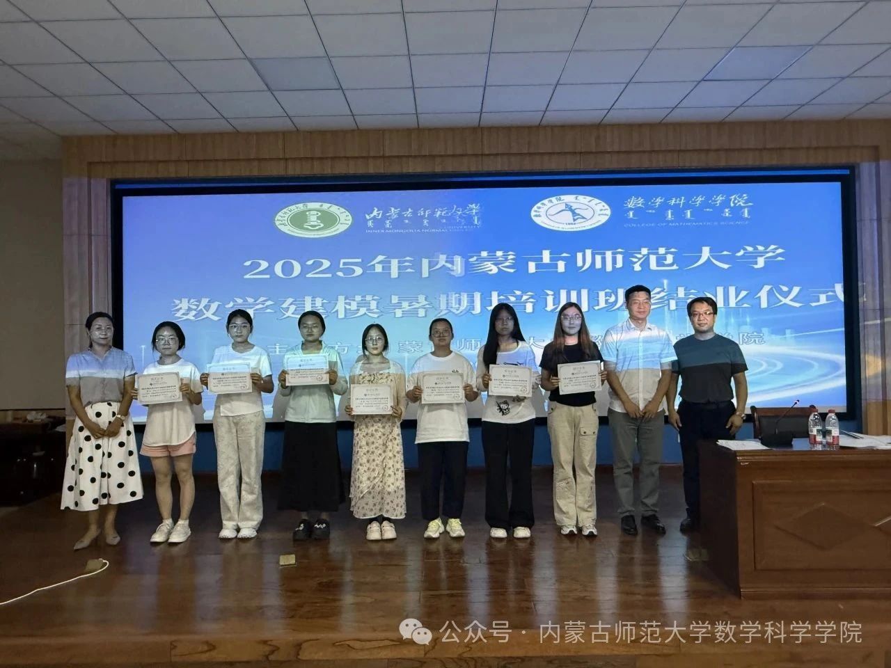7月18日,结业仪式如期举行。金年会jinnianhuicom副院长萨和雅主持仪式并作总结发言,他对全体学员在集训期间的辛勤付出和取得的进步给予了充分肯定,勉励大家将此次所学作为起点,在数学建模学习和实践创新的道路上继续坚定前行。仪式上,吉林财经大学木仁教授、我校萨和雅教授和陈阿茹娜老师共同为参训学员们颁发了结业证书。