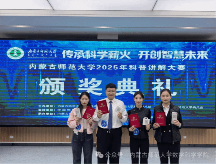 本次大赛以“传承科学薪火,开创智慧未来”为核心主题,鼓励参赛者用通俗易懂的形式解读专业知识、传播科学思想。金年会官网4位参赛同学紧扣大赛宗旨,聚焦不同科普方向打造优质作品。25级专硕班贺越越《蒙古包中的“圆锥数学”——草原居民中的几何智慧》荣获二等奖;23级四班白昊杨同学的《治沙计算器——内蒙古万亩林田中的网格数学》斩获二等奖;23级四班庞静同学的《草原上的斐波那契数列——从羊草分支看生态平衡》获三等奖;25级信班王娜蓉同学的《揭开雷暴哮喘的神秘面纱》荣获三等奖。