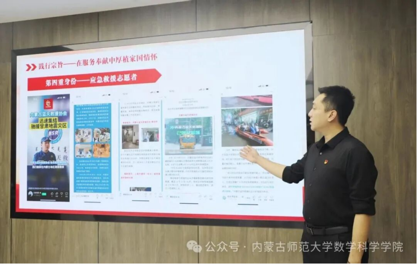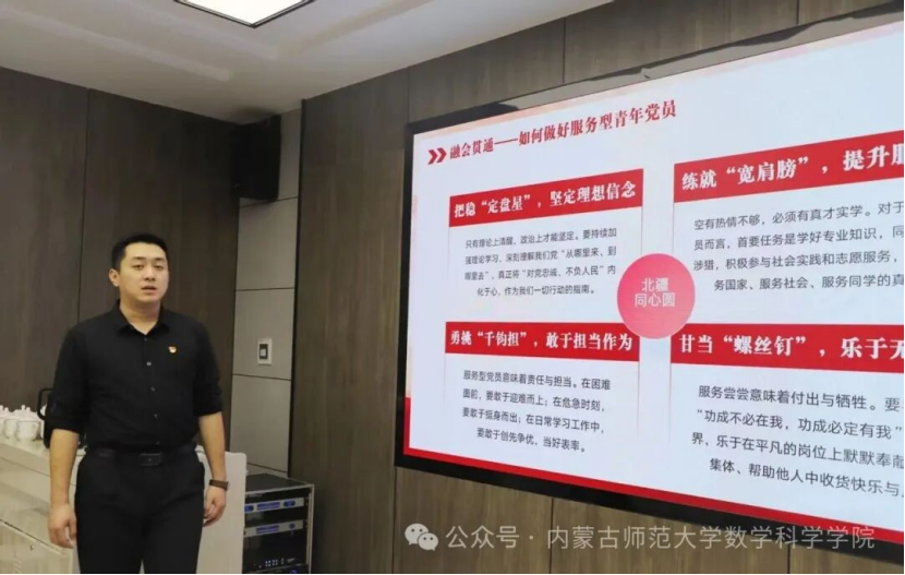本次党课是金年会jinnianhuicom党委“数映内蒙古”党建品牌系列活动之一。学院党委始终坚持以数学为基,教学立院,科研强院,映射建设内蒙古“两个屏障”、“两个基地”、“一个桥头堡”的五大任务,构建内师数学赋能北疆发展的创新范式。金年会jinnianhuicom学生第二党支部将坚持“数绘同心圆”,以党为圆心、以数学为半径,在祖国北疆绘就青年学子同心向党的青春之圆,引导广大学生党员在理论学习与社会实践中坚定信仰、增长才干、服务社会。