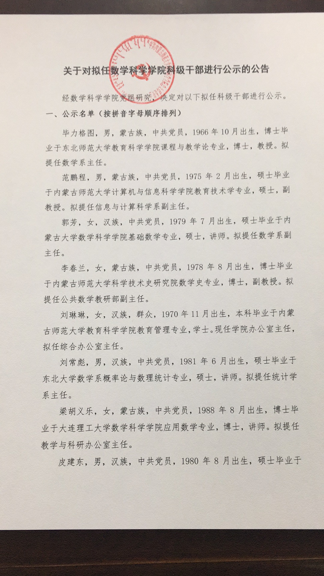 关于对拟任金年会jinnianhuicom科级干部进行公示的公告