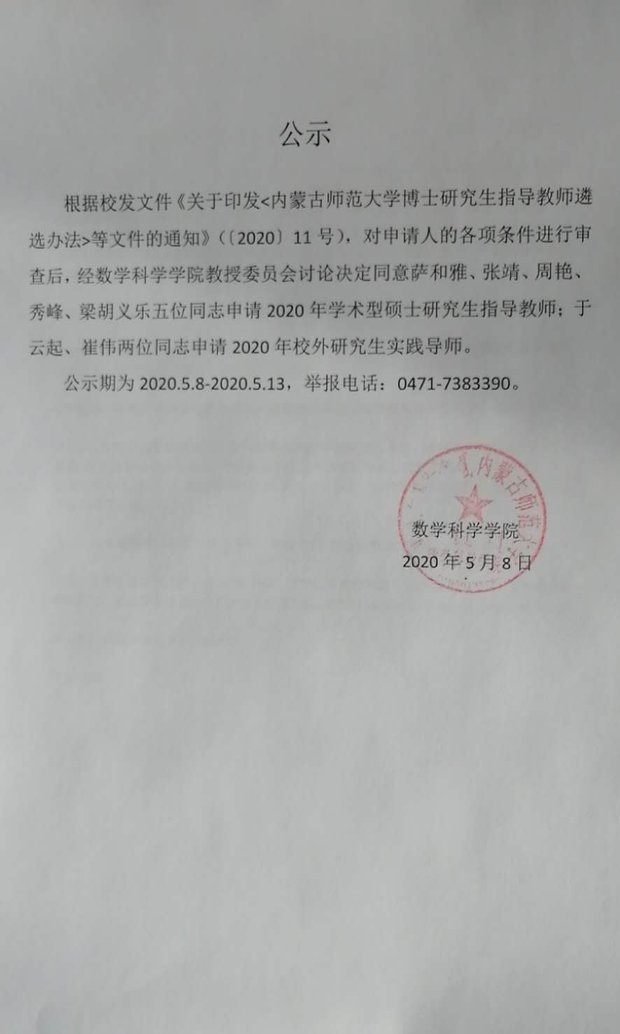 关于2020年度金年会jinnianhuicom申请研究生指导教师的评审公示