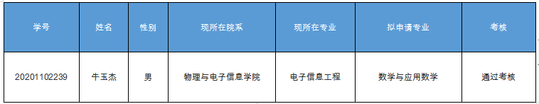 、考核,确定拟接收转专业学生名单如下