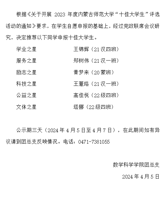 金年会jinnianhuicom2023年度“十佳大学生”推荐名单公示