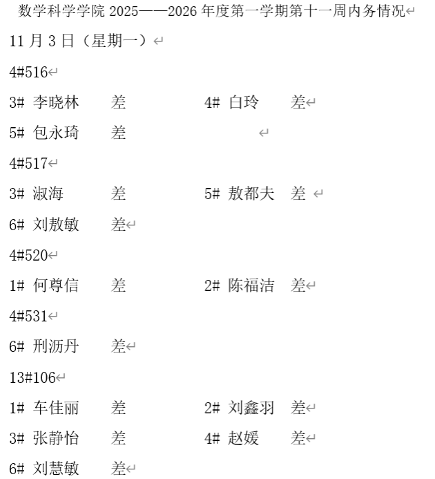 金年会jinnianhuicom2025——2026年度第一学期第十一周内务情况