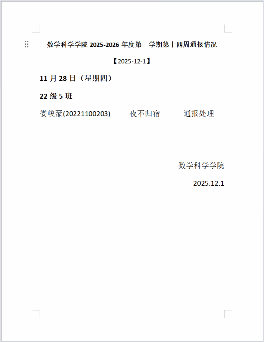 金年会jinnianhuicom2025-2026年度第一学期第十四周通报情况