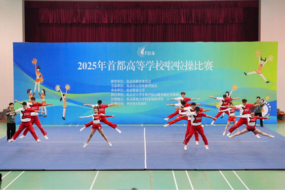 2025年首都高等学校啦啦操比赛于5月24日在北京林业大学田家炳体育馆正式拉开帷幕。本次赛事由北京市教育委员会指导、北京市大学生体育协会主办、北京林业大学承办、北京市大学生体育协会健美操艺术体操分会执行。